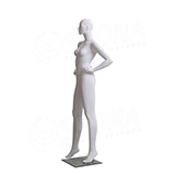 Abstraktní bílá matná stojící figurína se skleněným podstavcem je představitelkou nové vlny designu.