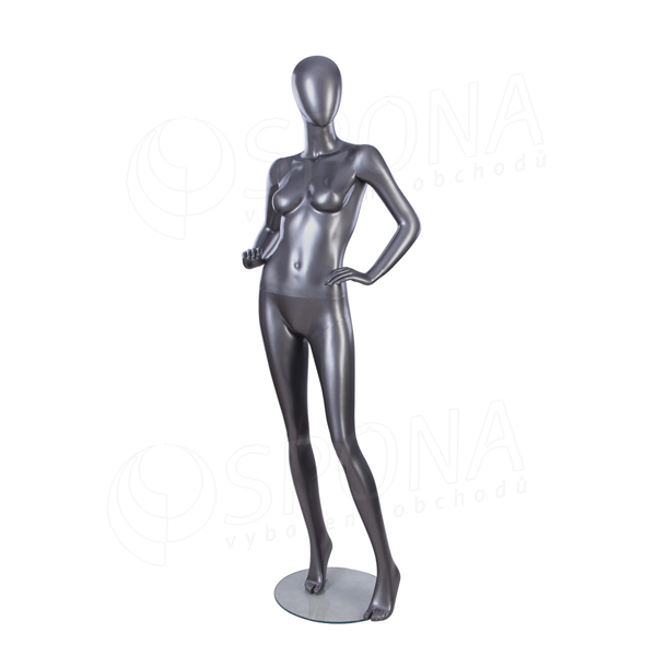 Stojící dámská figurína v abstraktním provedení vyniká svou jedinečnou tmavě stříbrnou barvou, které originalitu dodává také matná povrchová úprava. Všechny tyto atributy tvoří z této figuríny světový módní hit.
